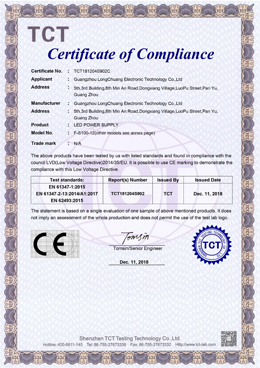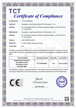 廣州龍創(chuàng)電子科技有限公司 成立于2009年專業(yè)從事LED AC-DC開關(guān)電源及驅(qū)動(dòng)電源的開發(fā)、生產(chǎn)及銷售。公司座落于廣州番禺,交通便捷。廠區(qū)面積4000平方米;年產(chǎn)能100多萬臺(tái)。產(chǎn)品已獲得CCC 、CE&RoHS等證書,遍布國(guó)內(nèi)外市場(chǎng),遠(yuǎn)銷全球,如歐美、南美、中東、東南亞及港臺(tái)等60個(gè)國(guó)家和地區(qū),在行業(yè)內(nèi)享有一定的知名度。